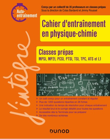 "Le cahier d’entraînement en physique-chimie est destiné aux élèves de première année post-Bac. Il permet aux élèves de s’entraîner en autonomie à l’acquisition de réflexes utiles en physique-chimie. Ce travail a été réalisé collectivement par plus d’une trentaine de professeurs en classes préparatoires."
